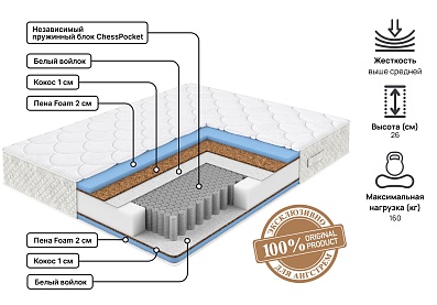 Матрас Absolute 160 х 200 Высокая с пружинным блоком