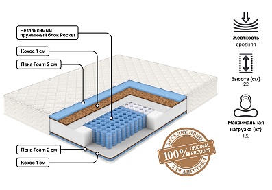 Матрас Anatomic dream Pro 120 х 195 Разная жесткость сторон с пружинным блоком