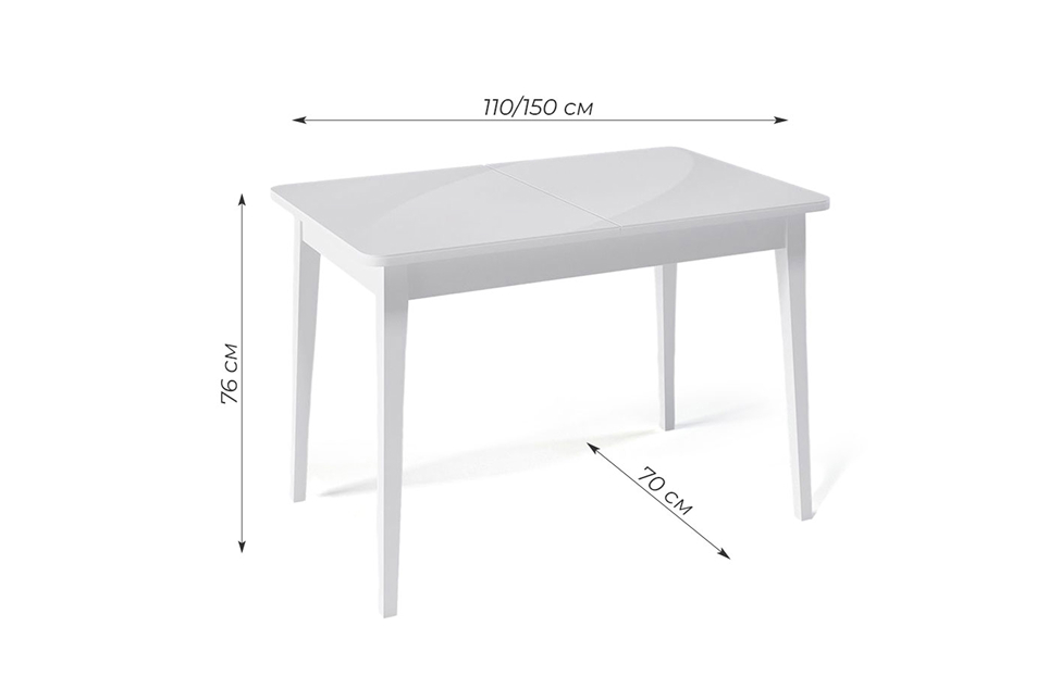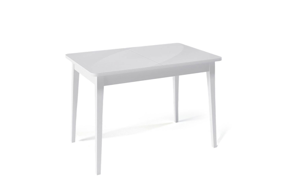 Стол обеденный Орпен прямоугольный раздвижной 1100М опоры белые, столешница - стекло белое сатин.