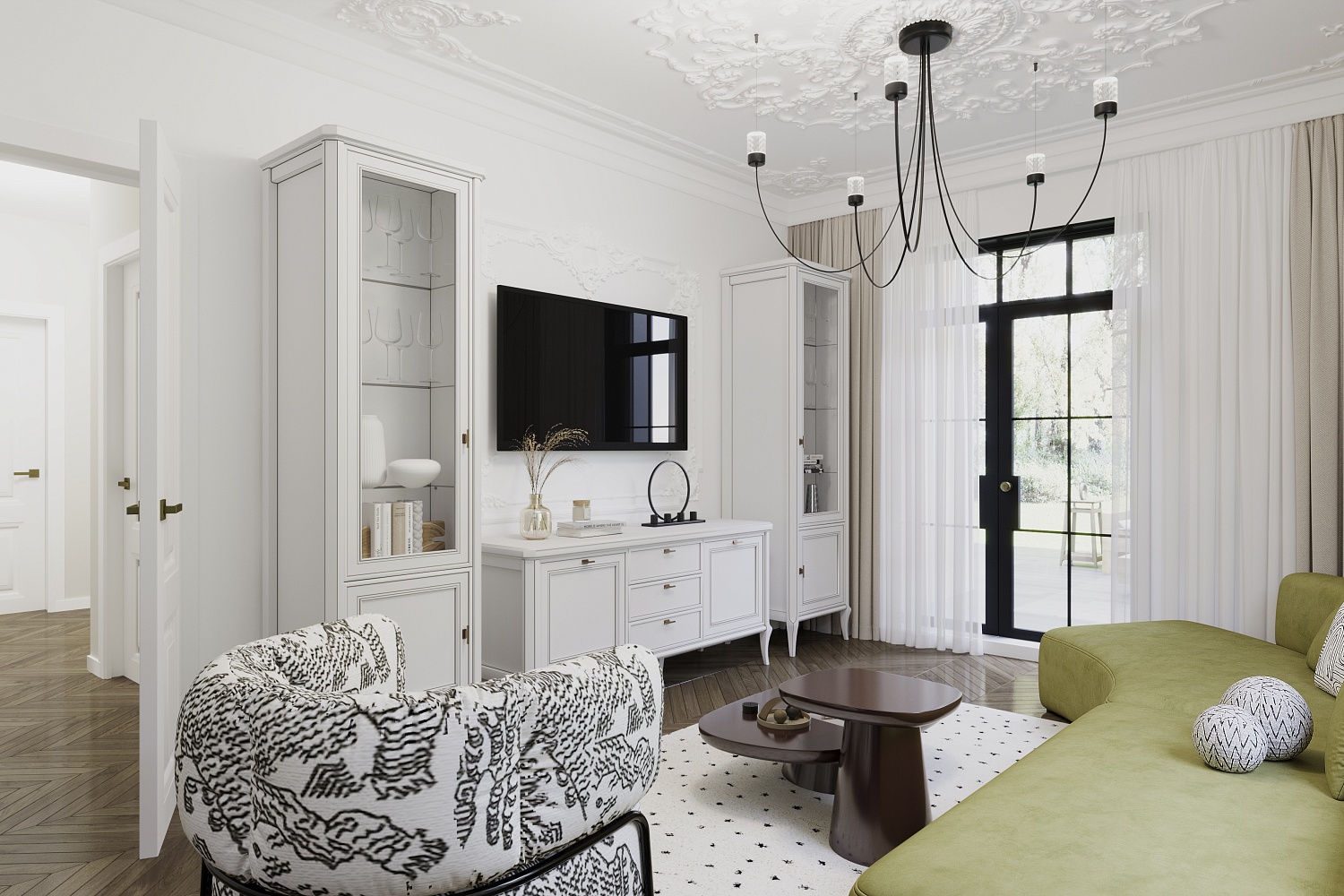 – описание: цвет бело-серый, назначение для гостиной, стиль неоклассика, размер 214.8x287x50.5 см.